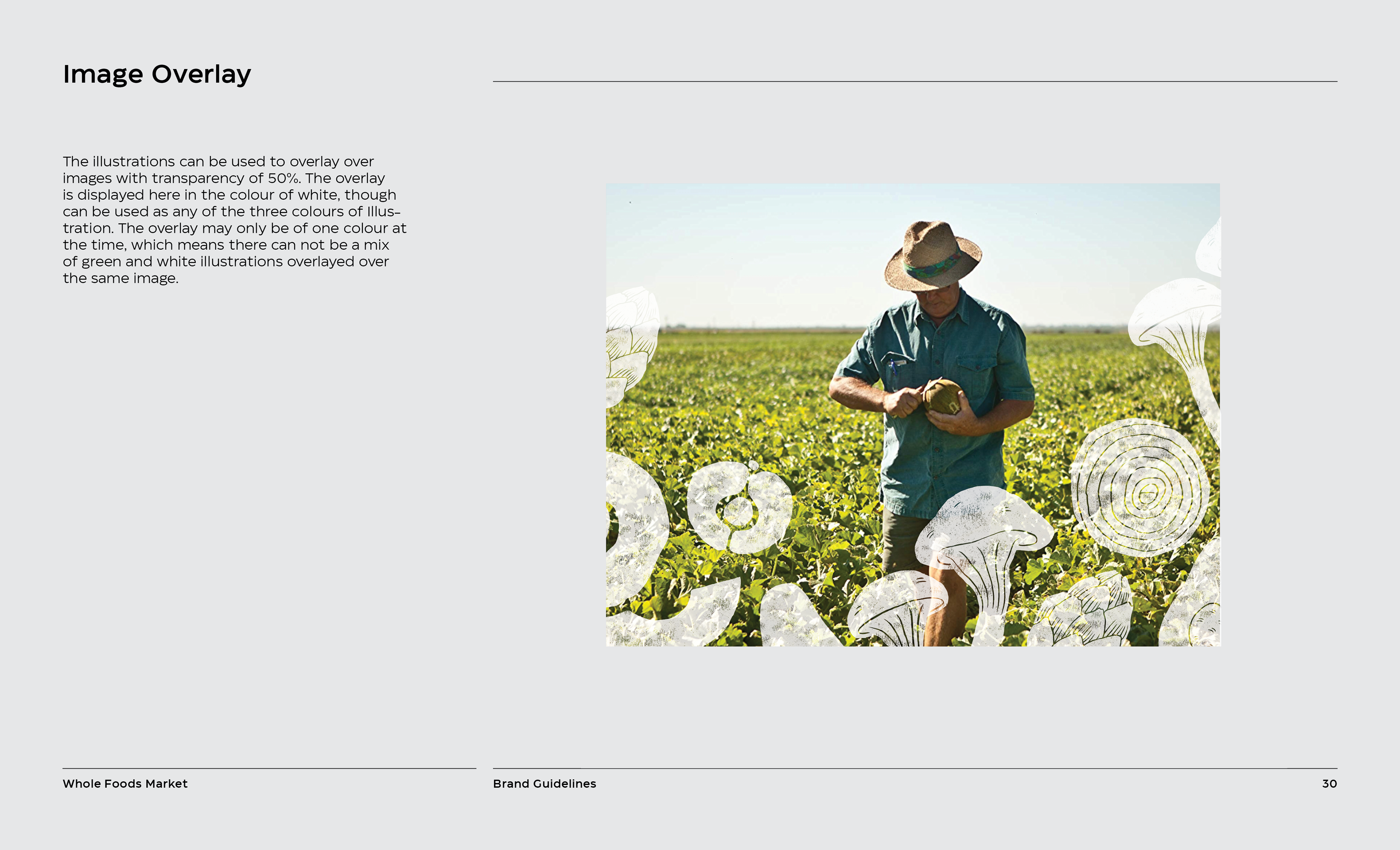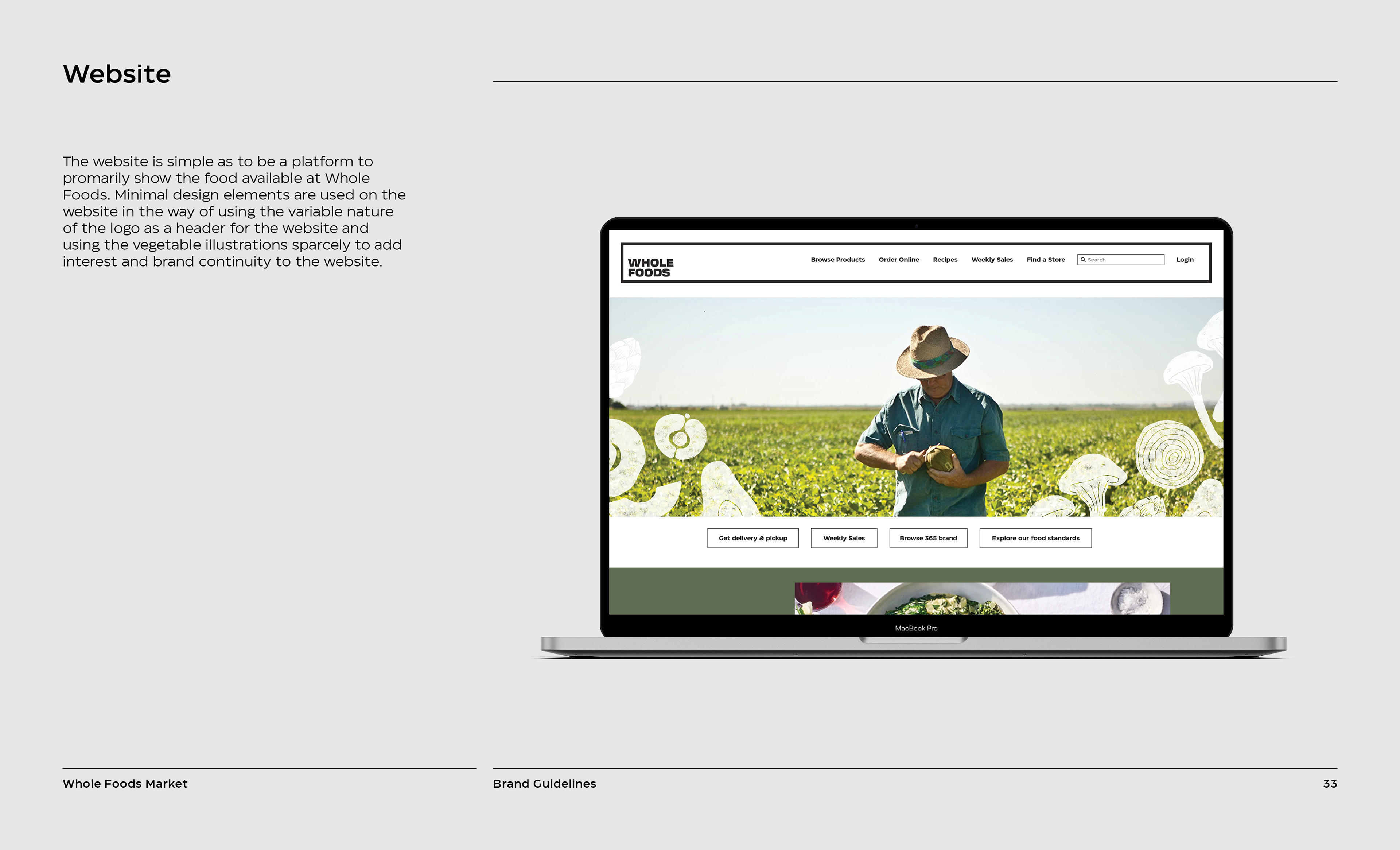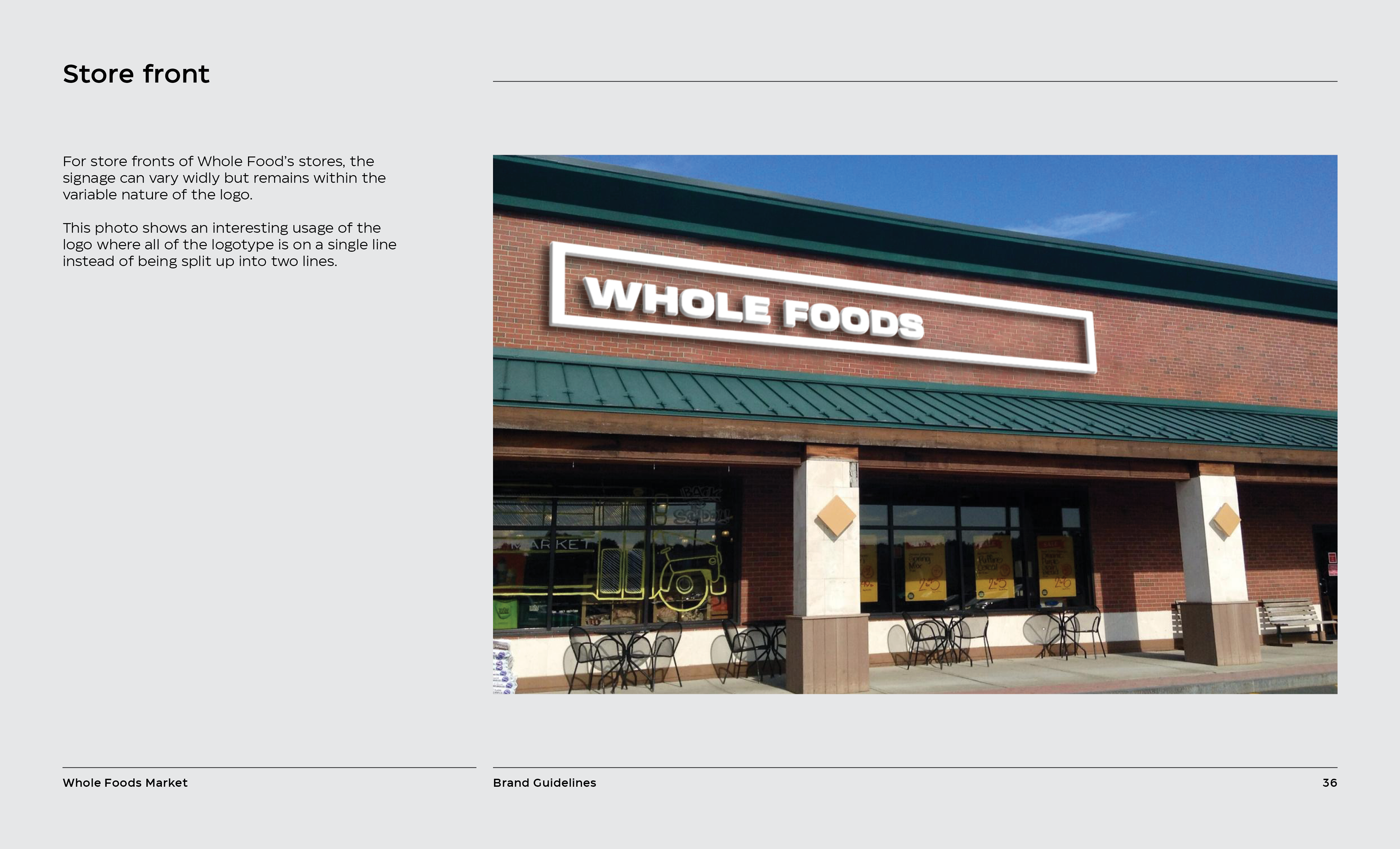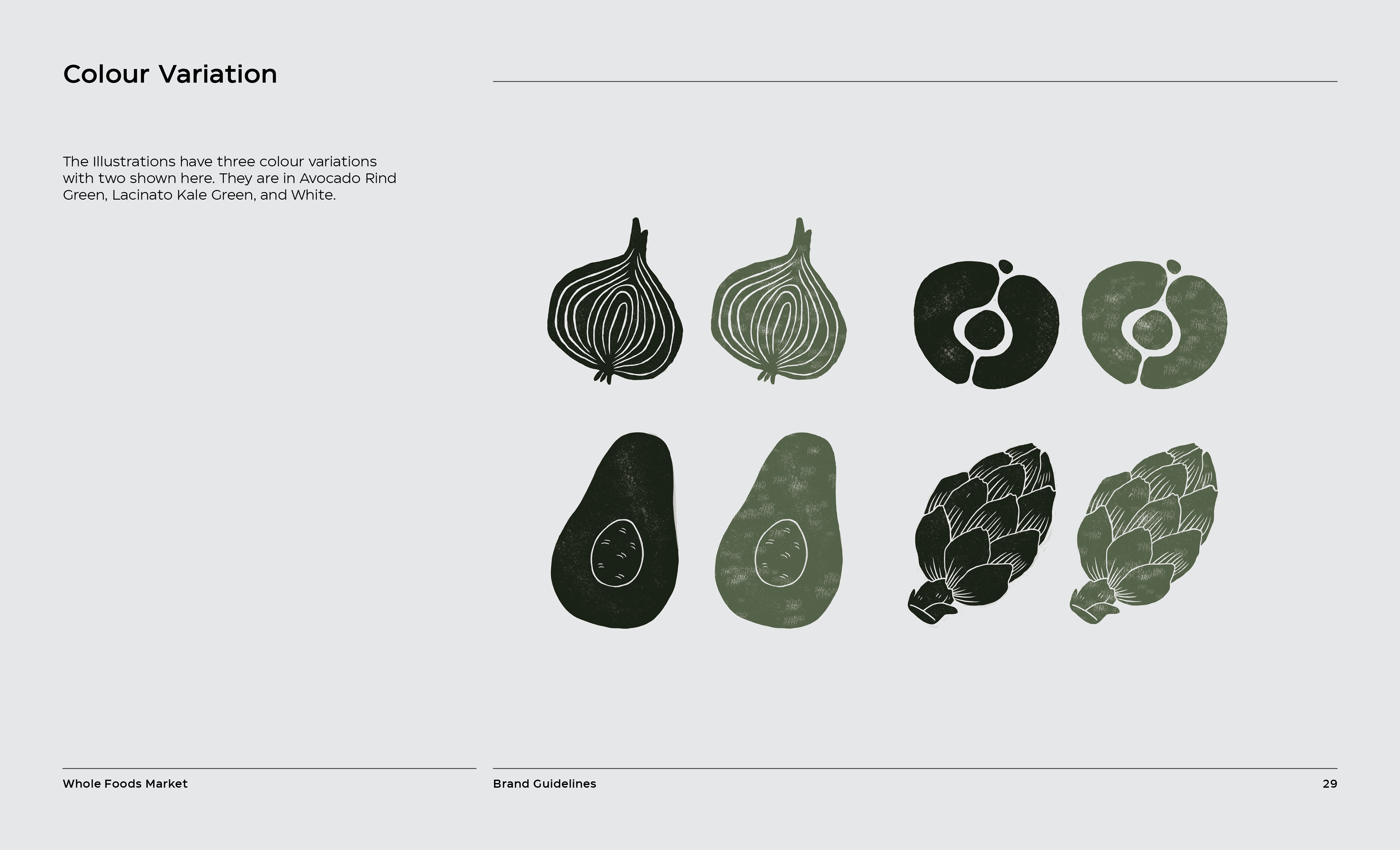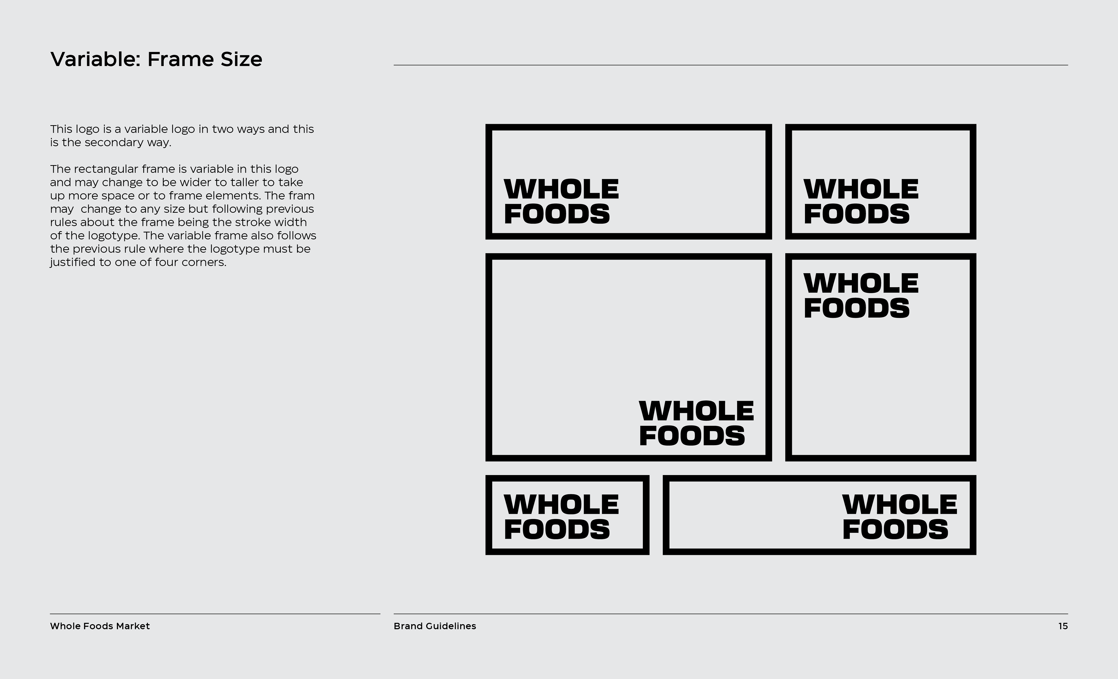 It is a rebranding of Whole Foods with a more contemporary, modern style. A new logo contains a variable system that now sets it apart with the ability to change, fill space, or frame elements. The frame element is meant to represent living through Whole Foods’ frame of values and also how it can change to fit your own values, as well as an abstract view of a shopping basket or cart from above. This new logo contrasted with hand-done illustration keeping a hearty, grounded, and rustic undertone.
