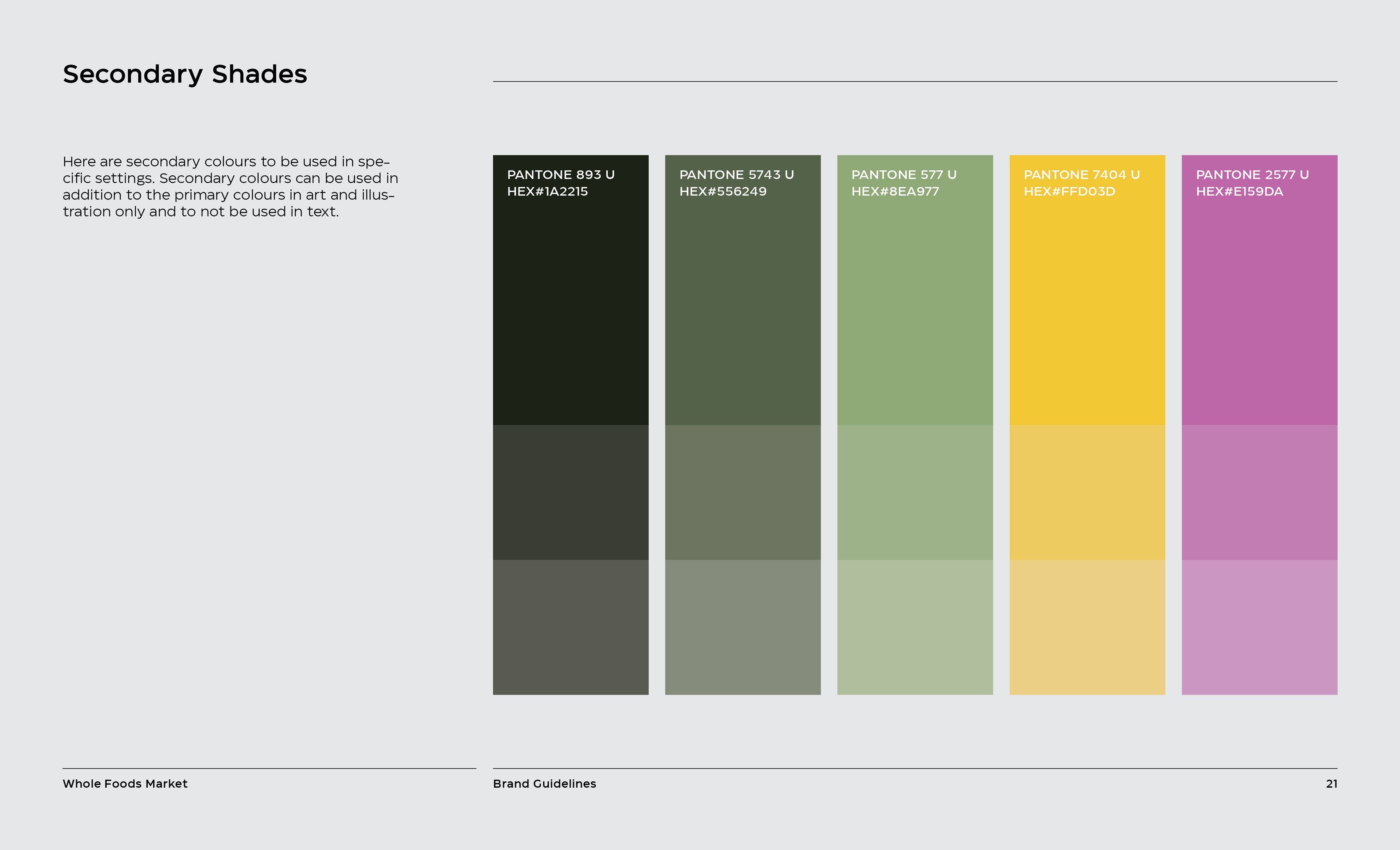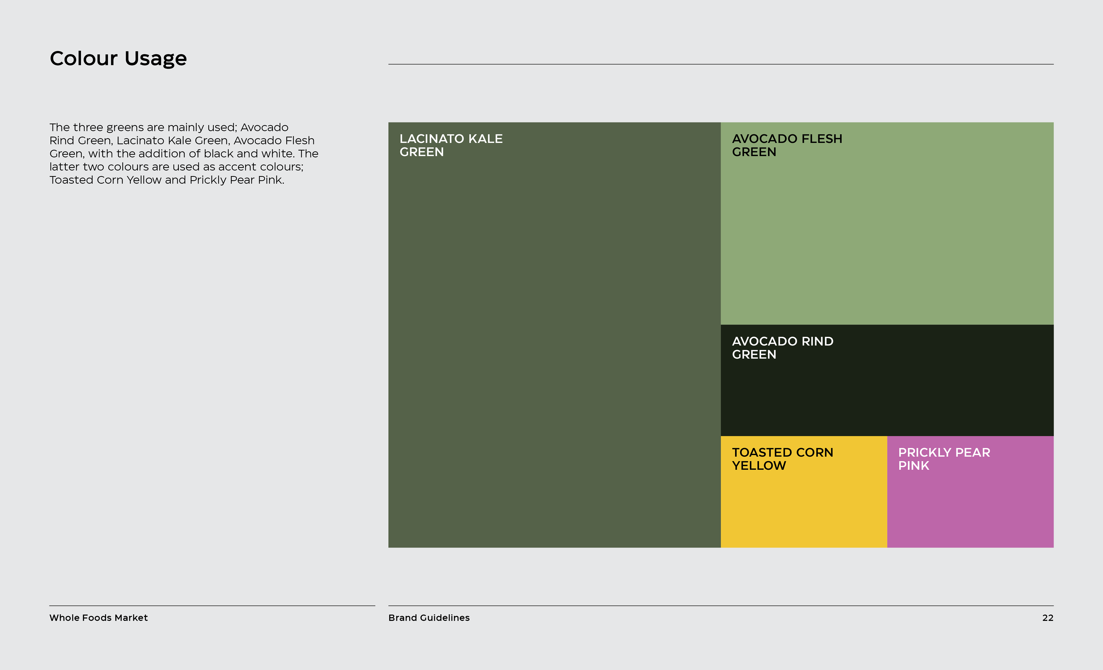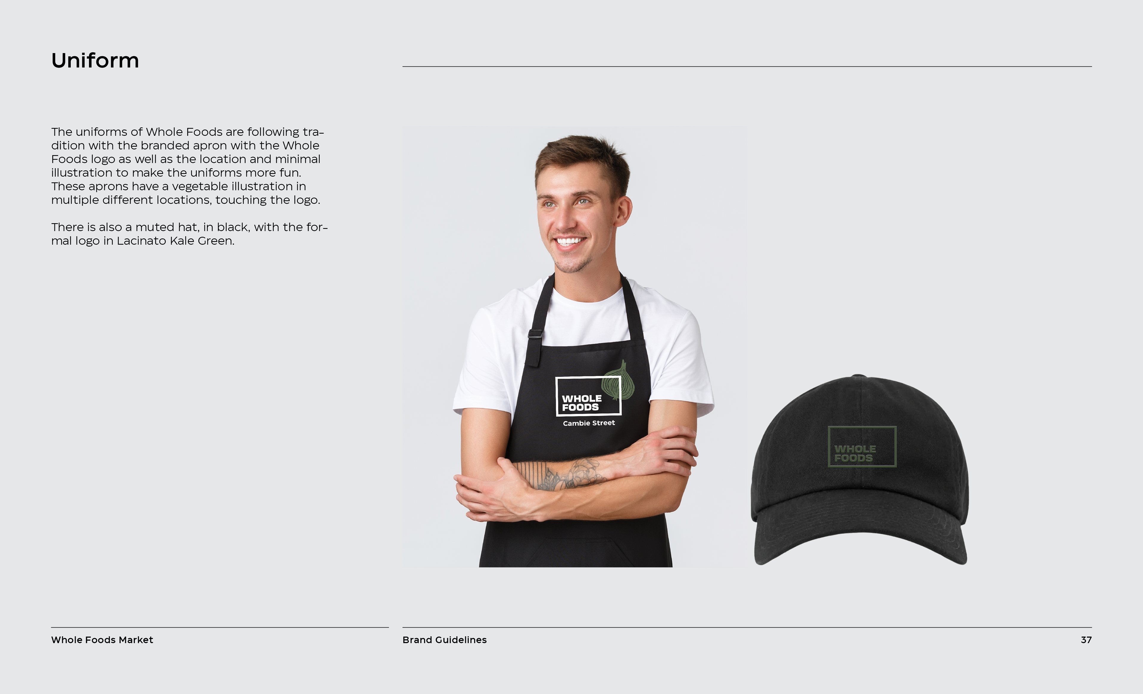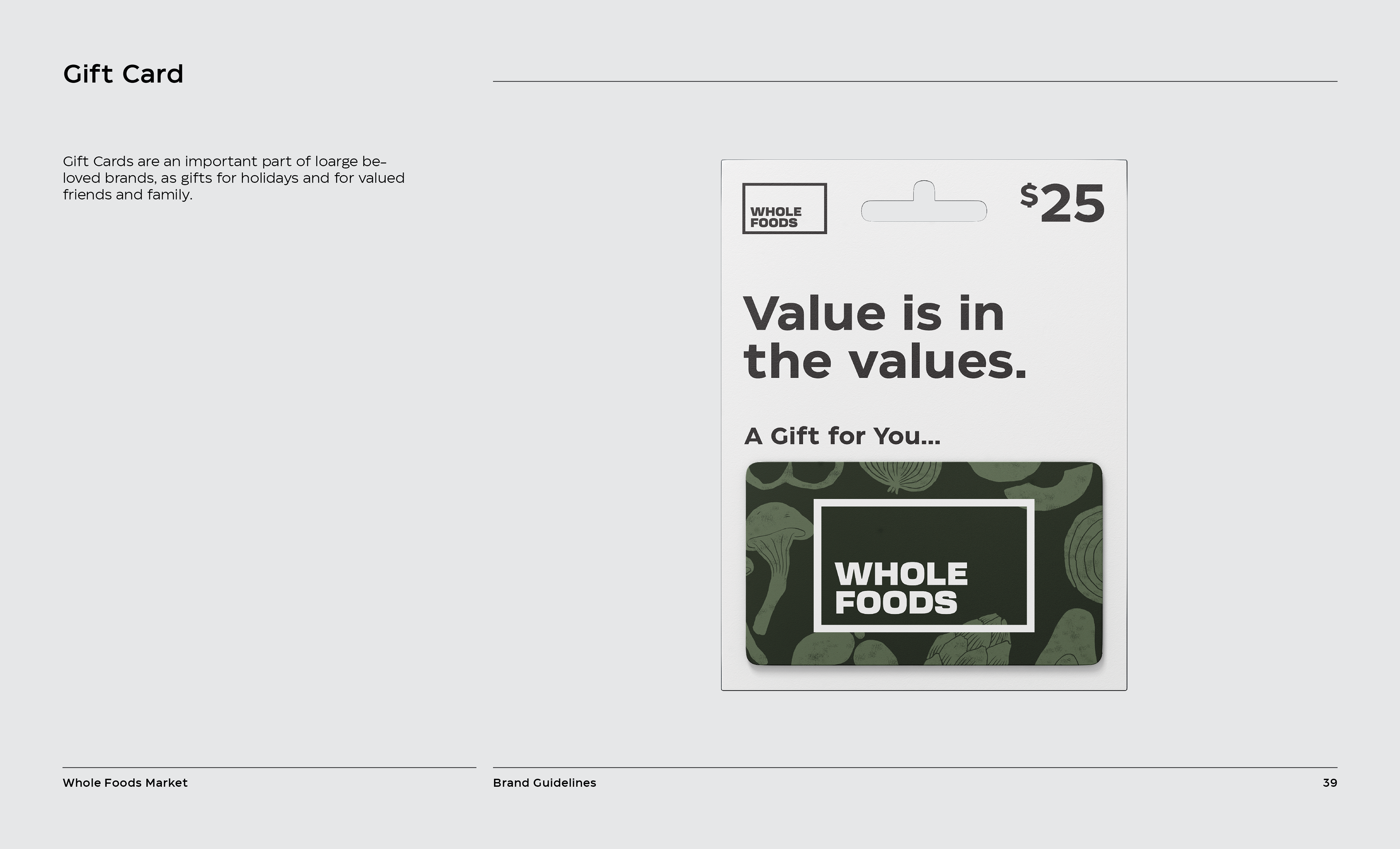 It is a rebranding of Whole Foods with a more contemporary, modern style. A new logo contains a variable system that now sets it apart with the ability to change, fill space, or frame elements. The frame element is meant to represent living through Whole Foods’ frame of values and also how it can change to fit your own values, as well as an abstract view of a shopping basket or cart from above. This new logo contrasted with hand-done illustration keeping a hearty, grounded, and rustic undertone.