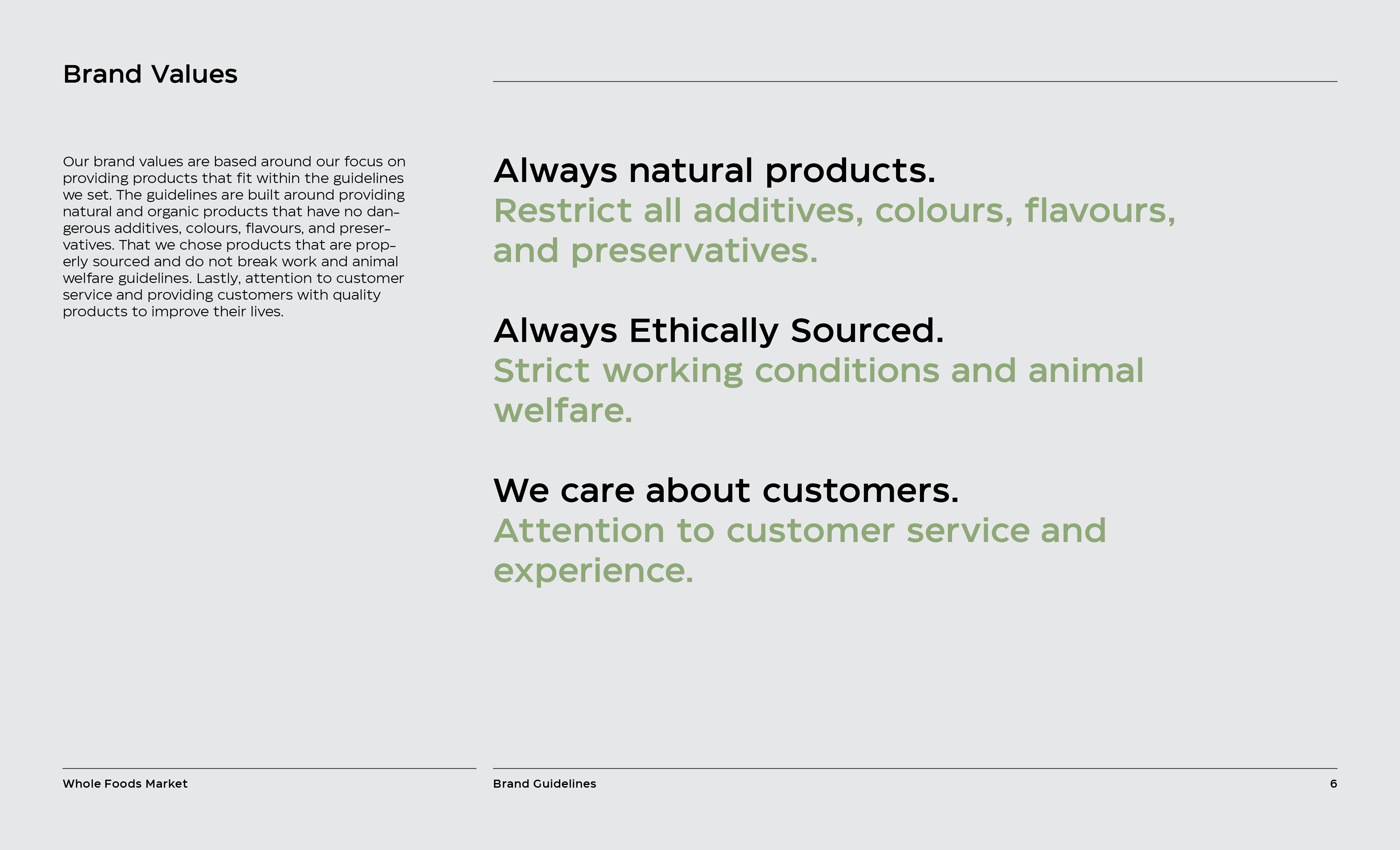 Whole Foods Market, is an international health food supermarket specializing in products that are natural, and organic, and fulfill a variety of diets. It is important to the brand that all products that are sold are properly sourced, does not break work and animal welfare guidelines, and are free of dangerous additives and preservatives.